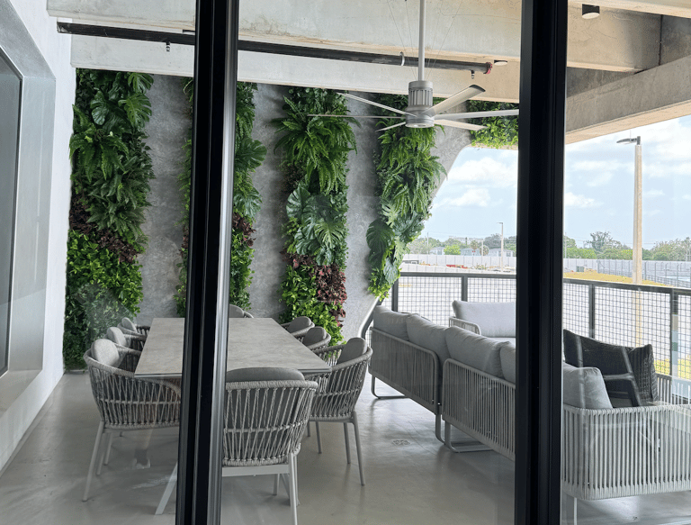A calming green wall for a city office lobby.