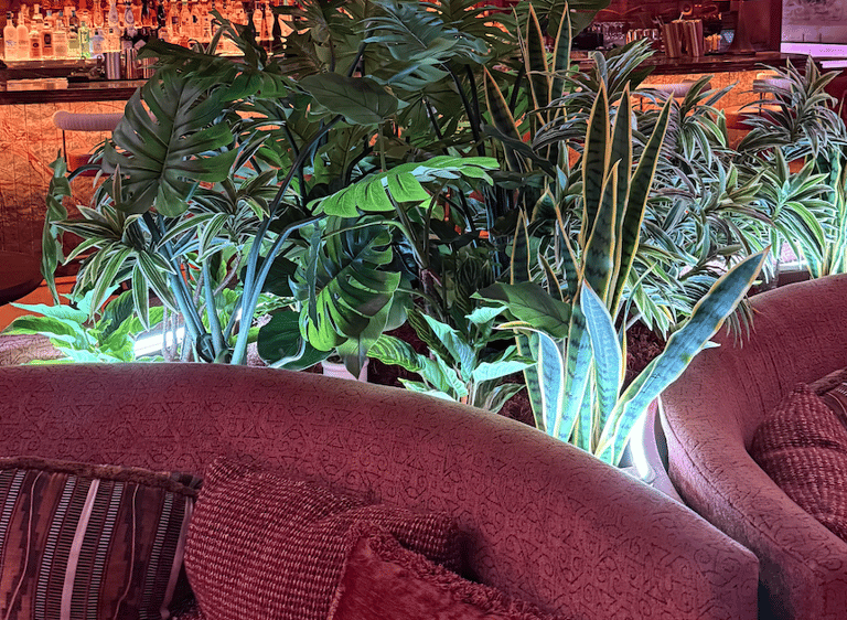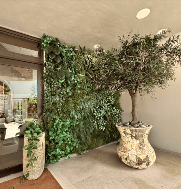 Showcasing lush artificial planters installations.